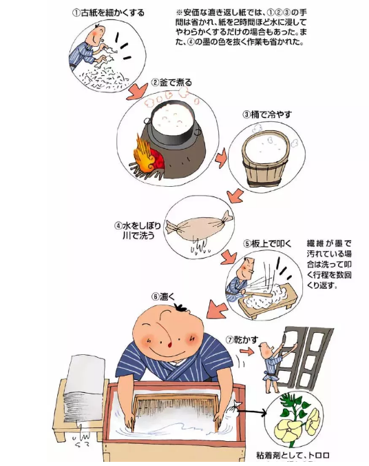 日本古时的古纸再生技术示意图